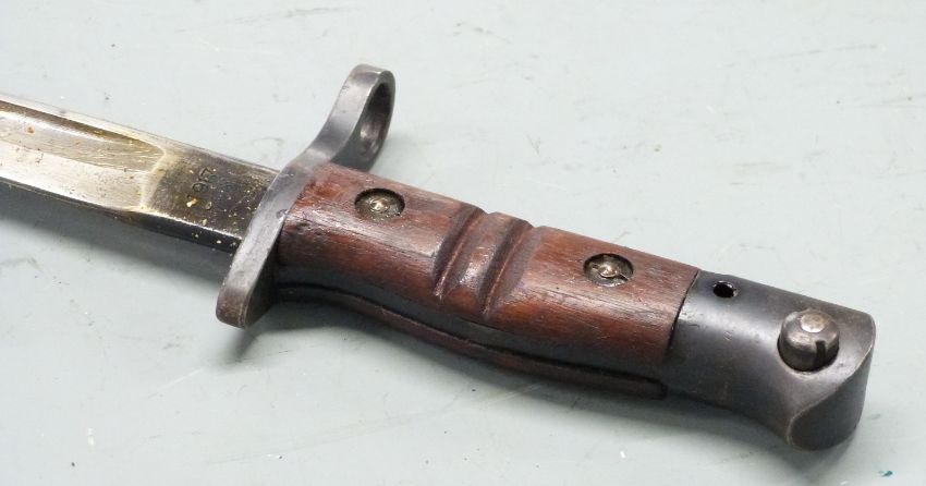 American 1917 pattern sword bayonet with some clear stamps to ricasso, 43cm fullered blade and scabbard