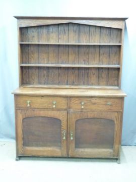 A late 19th/20thC oak dresser, W140 D48 H185cm