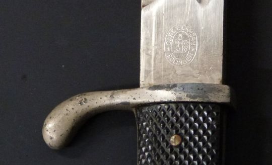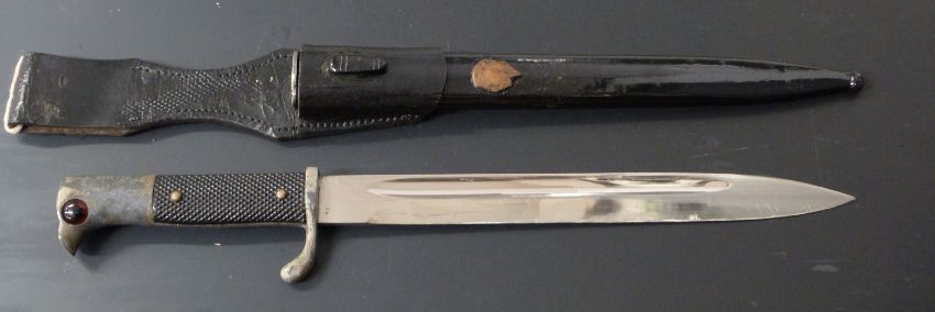 German KS98 pattern bayonet with Carl Eickhorn to ricasso, 25cm fullered blade, scabbard and frog