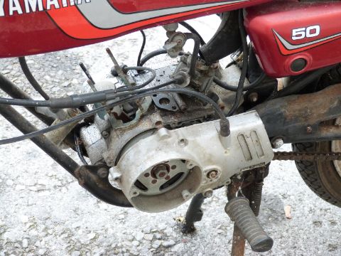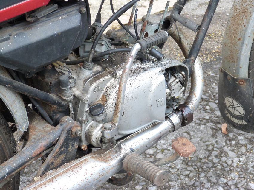 1981 Yamaha RD50 motorbike with 50cc engine (part dismantled) and old style V5 document