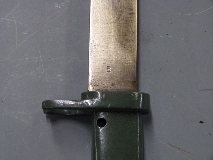 Two German 88/98 pattern Ersatz all steel bayonets, both with 31cm blades, one with acceptance stamp to ricasso, one with fullered blade the other unfullered, both with scabbards