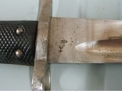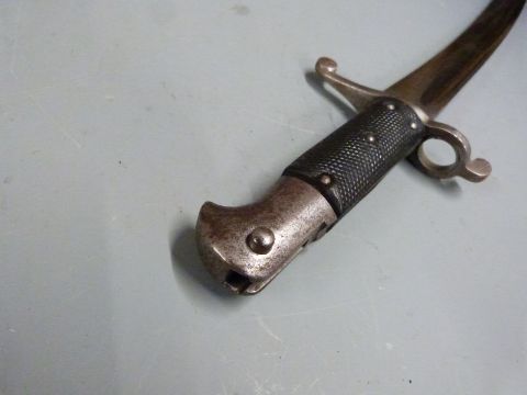 British 1856/58 pattern sword bayonet with some clear stamps, 58cm fullered yataghan blade, with scabbard and frog