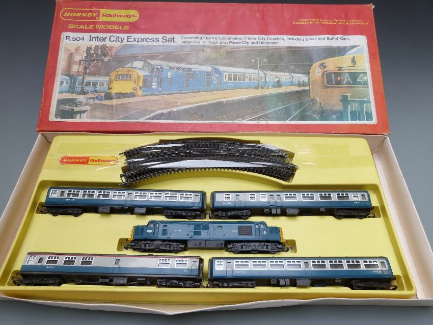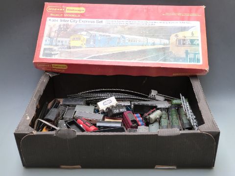 Hornby 00 gauge Inter-City Express train set R504 in original box together with 43 Hornby, Tri-ang, Lima, Mainline and similar locomotives, wagons and tankers.
