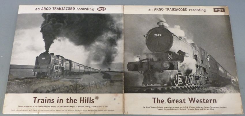 Six Argo records of steam locomotives to include Trains in the Hills, The Great Western, On the Footplate of a 'King' and Pacific Power