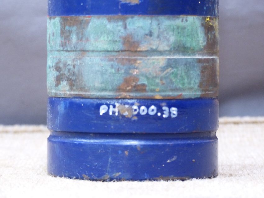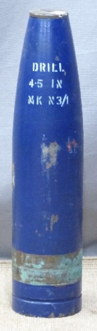 British Royal Navy 4.5 MkN3/1 gun practice round with fuse marked No11 TL, length 47.5cm. Consigned by a Royal Navy museum