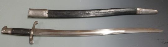 British 1856/58 pattern sword bayonet with some clear stamps, 58cm fullered yataghan blade, with scabbard