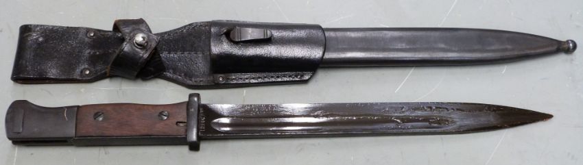 German 84/98 pattern bayonet with flashguard, Durkopp 8188 to ricasso, 25cm fullered blade, with scabbard and frog