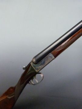AYA No. 4 12 bore side by side ejector shotgun with named and engraved lock, engraved trigger guard, underside and top plate, chequered grip and forend, vacant cartouche to the underside of the stock, double trigger and 28 inch barrels choked ½ and full, overall length 116cm length of pull 39cm, serial number 186260. PLEASE NOTE THAT A VALID RELEVANT FIREARMS/SHOTGUN CERTIFICATE IS REQUIRED TO HANDLE/PURCHASE THIS ITEM.