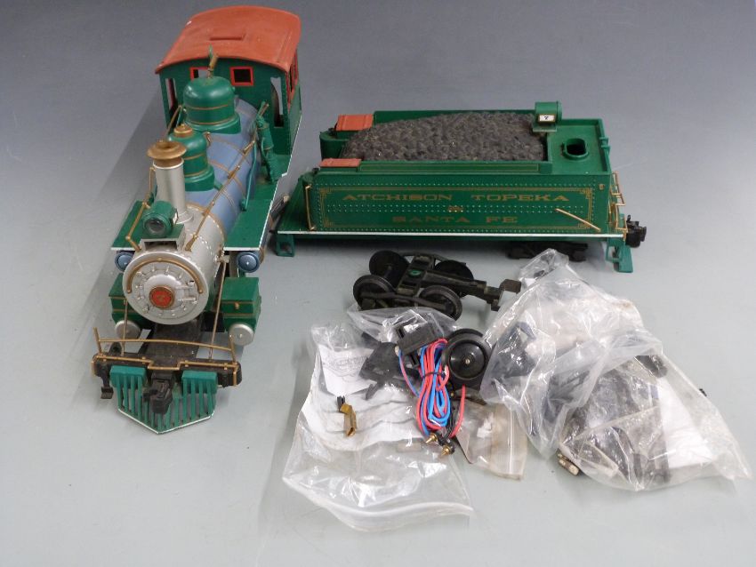 Bachmann G gauge Atchison Topeka & Santa Fe 4-6-0 American locomotive and tender '7'.