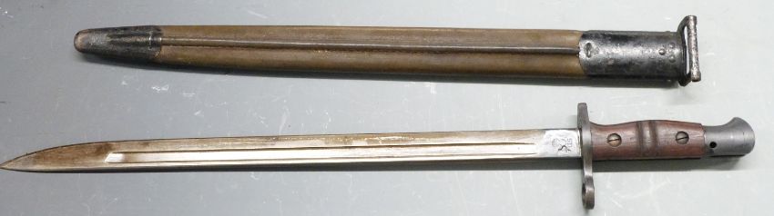 American 1917 pattern sword bayonet, some clear stamps to ricasso, 43cm fullered blade, scabbard and frog