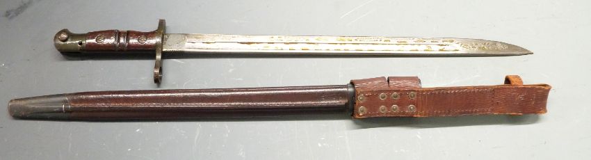 American 1917 pattern sword bayonet with some clear stamps to ricasso, 43cm fullered blade, scabbard and frog