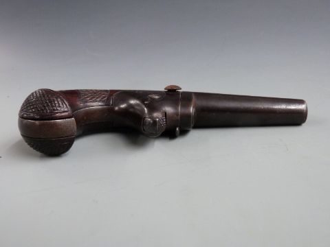 Colt No. 2 .41 rimfire derringer pistol with shaped and chequered grip, engraved decoration, sheathed trigger and 2.25 inch barrel engraved 'Address Col. Colt Hartford Ct. U.S.A.', overall length 14cm.