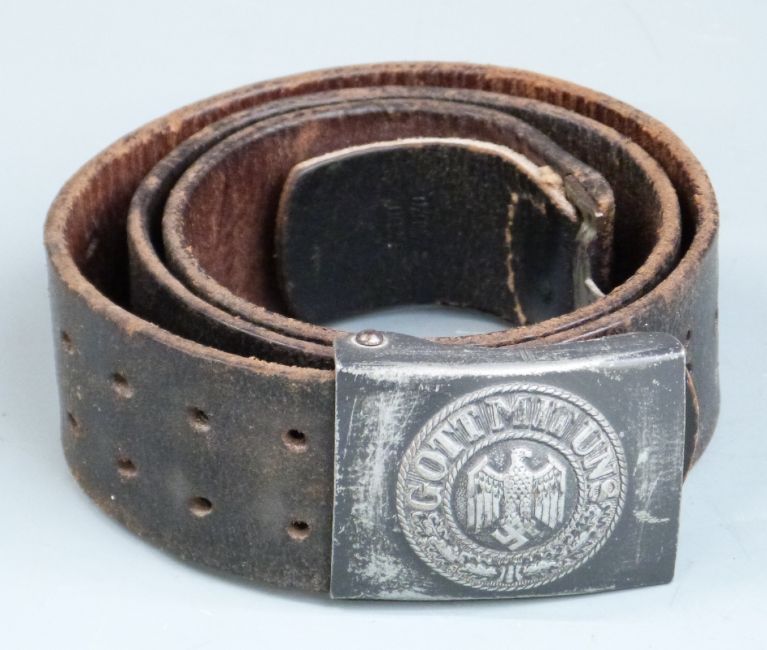 German Third Reich Nazi 'Gott Mit Uns' steel belt buckle and leather belt