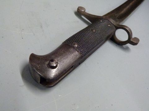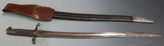 British 1856/58 pattern sword bayonet Gebruder Weyersberg makers, 58cm fullered yataghan blade, scabbard and frog