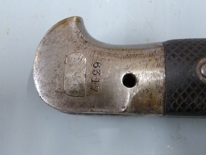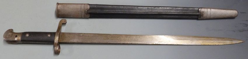 British 1887 pattern Martini Henry sword bayonet Mk3, clean stamps to ricasso and pommel, Wilkinson Sword Company to 46cm unfullered blade, with scabbard