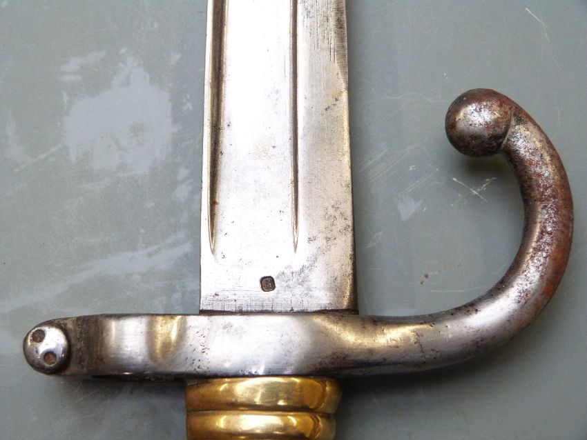 Belgium 1868 pattern yataghan bayonet for the Terrassen rifle, Weyersberg maker's mark to ricasso with 57cm fullered blade