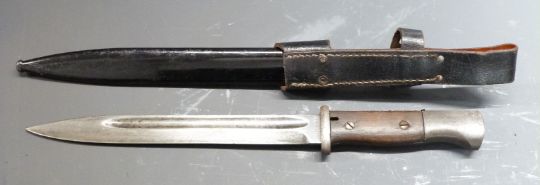 German 84/98 pattern bayonet with flashguard, F Herder 2464 to ricasso, 25cm fullered blade, with scabbard and frog