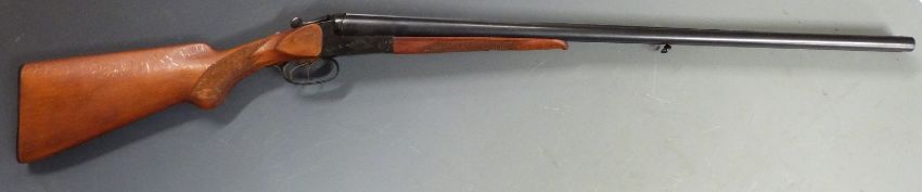Baikal 430 16 bore side by side shotgun with engraved locks, trigger guard underside and top plate, chequered semi-pistol grip and forend, double trigger and 28.25 inch barrels, overall length 114cm length of pull 38cm, serial number 7821. PLEASE NOTE THAT A VALID RELEVANT FIREARMS/SHOTGUN CERTIFICATE IS REQUIRED TO HANDLE/PURCHASE THIS ITEM.