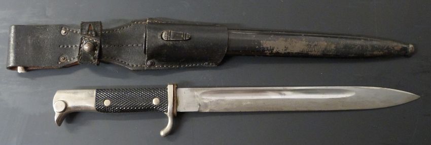 German KS98 pattern bayonet with E Pack & Sohne maker's mark to ricasso, 25cm fullered blade, scabbard and frog