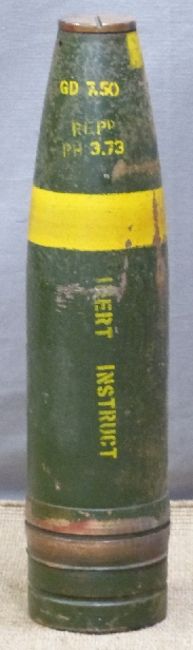 Three British Royal Navy 4.5 inch Mk8 gun practice round, marked to fuses No11 Mk2N, bodies marked Inert Instruct, length 49.5cm. Consigned by a Royal Navy museum