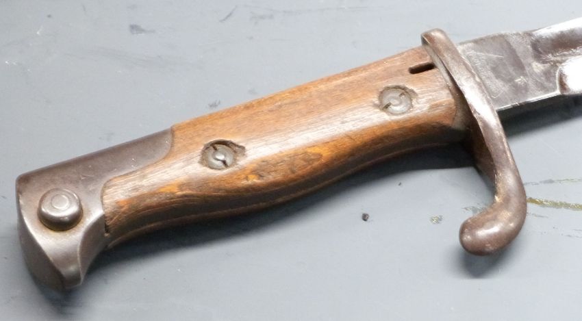 German 98/05 pattern bayonet with sawback removed, marked 917 to crossguard, 36cm blade, with scabbard and frog