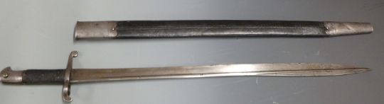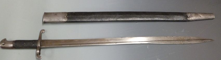 British Volunteers 1858 pattern Lancaster sword/bayonet with steel pommel and crossguard, 61cm falchion blade and scabbard