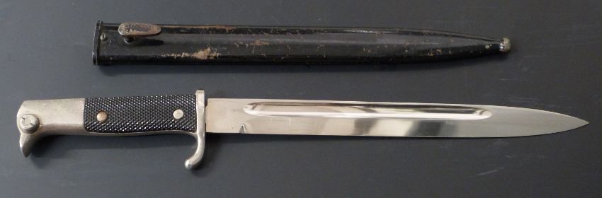 German KS98 pattern bayonet with E Pack & Sohne maker's mark to ricasso, 25cm fullered blade and scabbard