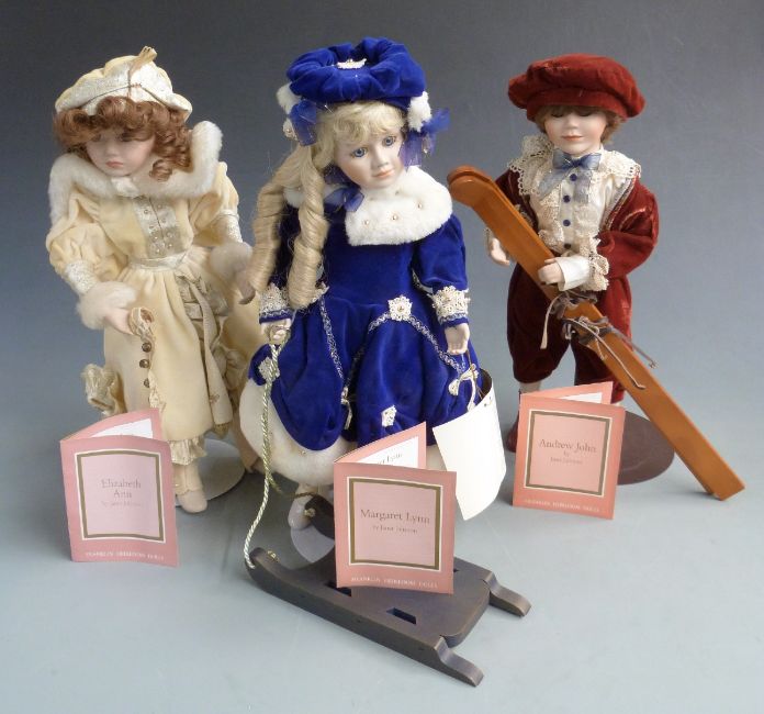 Three limited edition Franklin Mint Heirloom dolls Andrew John, Margaret Lunn and Elizabeth Ann, all in original boxes.