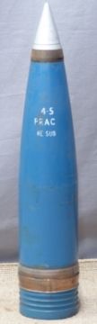 British Royal Navy 4.5 inch Mk8 gun practice round with fuse marked plug N2 Mk1 length 59cm. Consigned by a Royal Navy museum