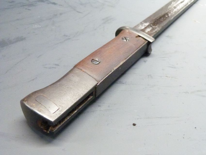 German 84/98 pattern bayonet, 43FNJ 5171 to ricasso, 25cm fullered blade, with scabbard stamped 9636