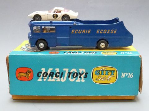 Corgi Major Toys diecast model Gift Set 16 Ecurie Ecosse Racing Car Transporter and Three Racing Cars, in original box.