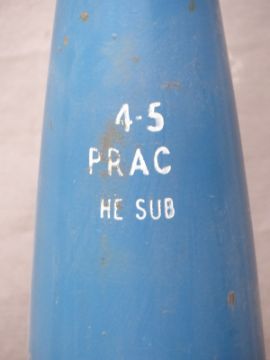 Five British Royal Navy 4.5 inch Mk8 gun practice rounds with fuses marked plug N2 Mk1 length 59cm. Consigned by a Royal Navy museum