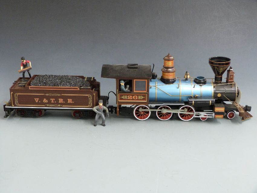 Bachmann G gauge V & TRR 4-6-0 American locomotive and tender '26'.