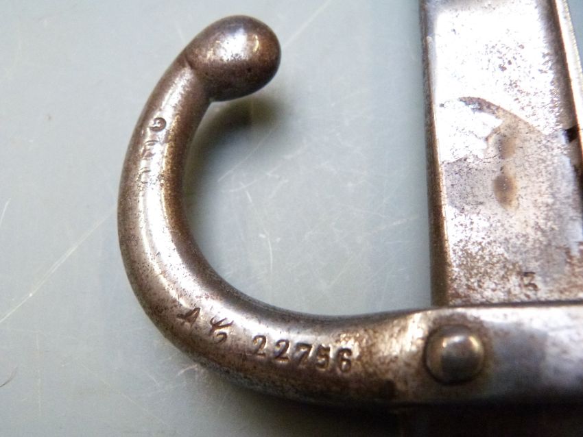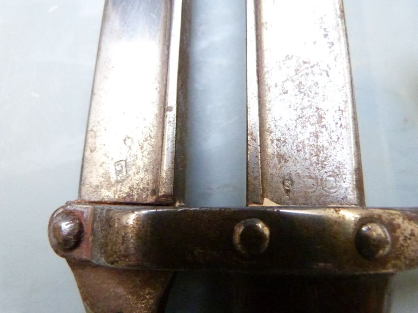 French 1874 pattern Gras bayonet conversion to fire side tongs, marked 1882 to 52cm blade