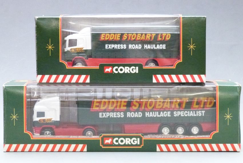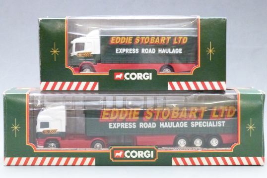 Ten mainly Corgi Superhaulers Eddie Stobart diecast model vehicles including fridge truck, skeletal trailer truck, Scania short base lorry etc, all in original boxes.