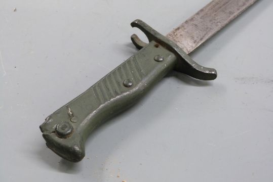 German 88/98 pattern Ersatz all steel version of the 98/05 'butcher' bayonet, with grooved grips, 36cm fullered blade and scabbard