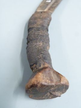 Two 19thC African Democratic Republic of Congo Zande/Azande iron throwing axes/knives with wooden handles, L57cm