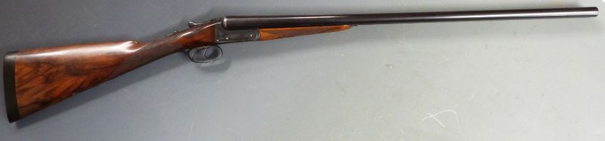 Charles Rossen 12 bore side by side shotgun with named and engraved locks, engraved trigger guard, underside and top plate, chequered grip and forend, double trigger, cartouche to the underside of the stock and 28.25 inch barrels choked ½ and improved cylinder, overall length 115cm length of pull 38.5cm, serial number 1660. PLEASE NOTE THAT A VALID RELEVANT FIREARMS/SHOTGUN CERTIFICATE IS REQUIRED TO HANDLE/PURCHASE THIS ITEM.