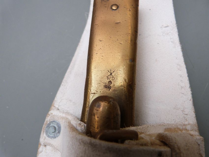 British 1895 pattern socket bayonet with some clear stamps to 55cm blade, with scabbard and frog