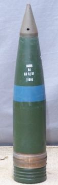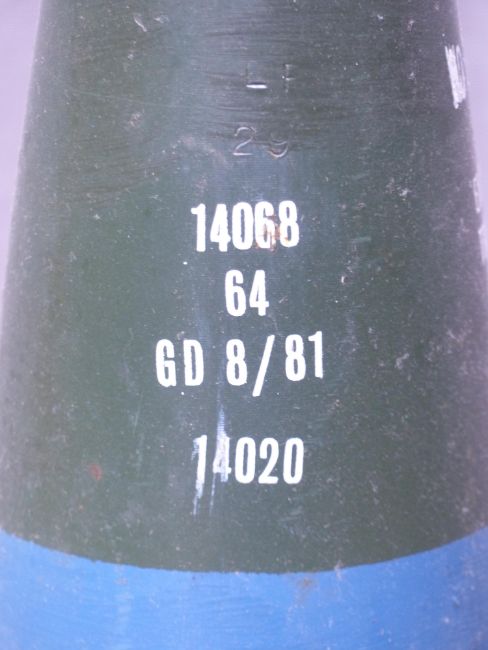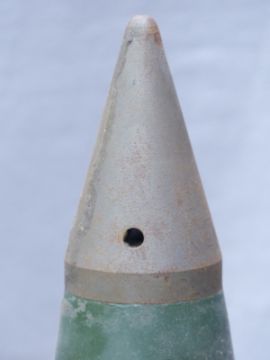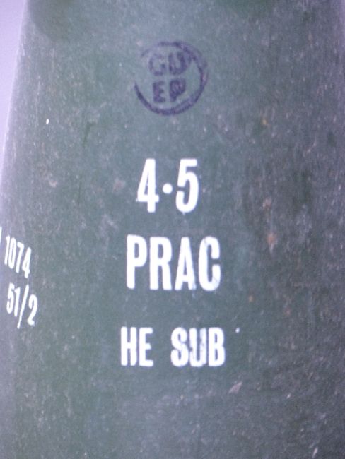 Four British Royal Navy 4.5 inch Mk8 gun practice rounds with fuse marked plug N4 Mk1, marked to main body 4.5 PRAC HE SUB and dated 1980/81, length 59cm. Consigned by a Royal Navy museum