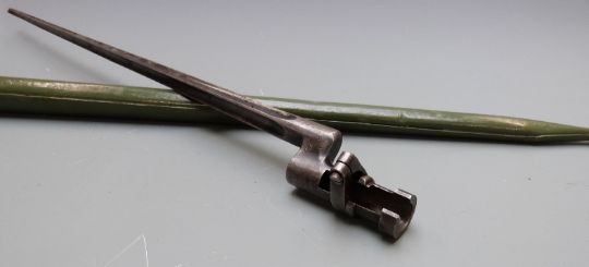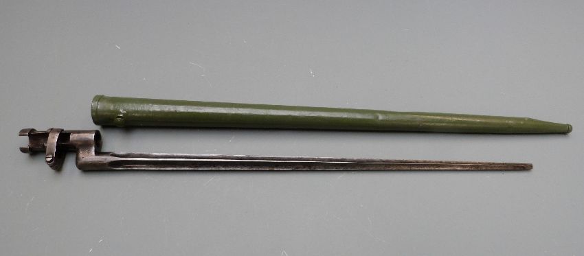 Russian Mosin Nagent 1891 pattern socket bayonet, some clear stamps and 93916 to 43cm cruciform blade, with scabbard
