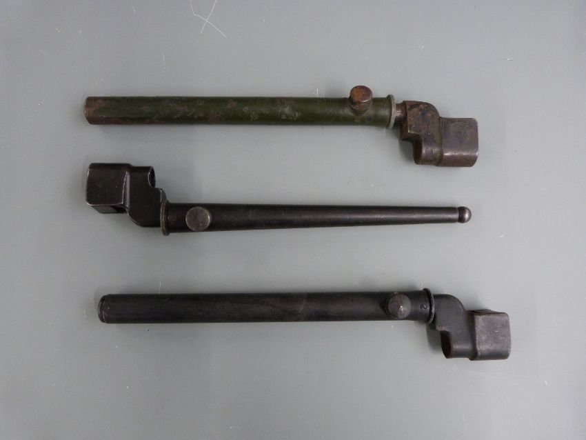 Three British No4 Mk2 spike bayonets with 20cm blades and scabbards