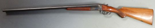 Ebore 12 bore side by side shotgun with engraved locks, trigger guard underside and top plate, chequered semi-pistol grip and forend, double trigger and 29.5 inch barrels choked ½ and ¾, overall length 118cm length of pull 36.5cm, serial number 39828. PLEASE NOTE THAT A VALID RELEVANT FIREARMS/SHOTGUN CERTIFICATE IS REQUIRED TO HANDLE/PURCHASE THIS ITEM.