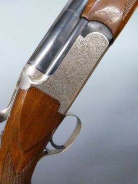 Barasingha 220 12 bore over and under ejector shotgun with engraved lock, top plate and underside, chequered semi-pistol grip and forend, single trigger, vented top rib and 28 inch barrels choked ¼ and ¾, overall length 115cm, length of pull 36.5cm, serial number 4166074. PLEASE NOTE THAT A VALID RELEVANT FIREARMS/SHOTGUN CERTIFICATE IS REQUIRED TO HANDLE/PURCHASE THIS ITEM.