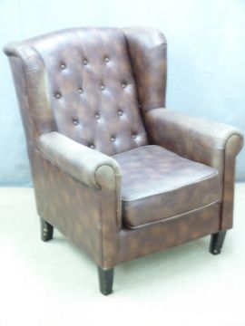 A contemporary faux leather Chesterfield wing back armchair, H98cm