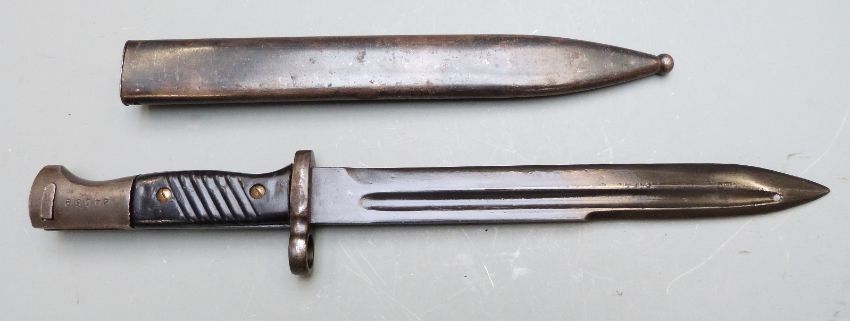 Israel manufactured 1949 pattern bayonet, clear stamps to ricasso, 24339 to pommel, 24.5cm fullered blade, with scabbard