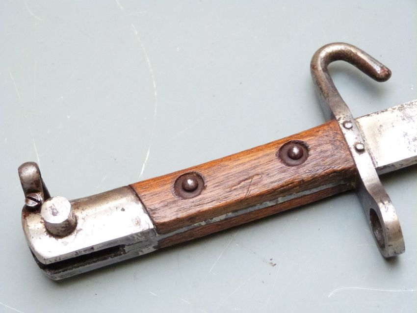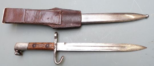Austrian 1895 pattern bayonet, no stamp, hook and downswept quillon for NCOs, 24cm blade, with scabbard and frog
