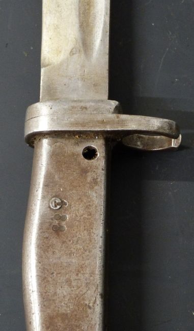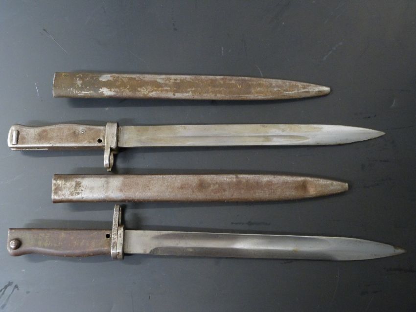 Two German Ersatz all steel bayonets, one with acceptance stamp, one stamped 188 to grip, both with 31cm fullered blades and scabbards