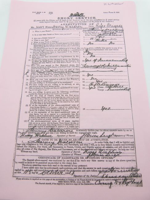 India Service Medal 1895 with Punjab Frontier 1897-98 named to 3437 Pte A Waldron, 3d Bn Rif Bde. Harry Waldron enlisted in 1894 aged 18 and served with the 3rd Battalion Rifle Brigade