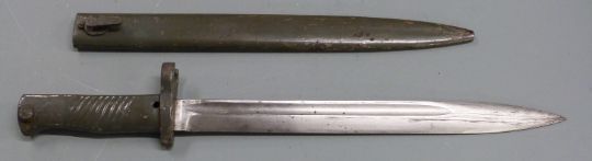 German 88/98 pattern Ersatz all steel knife bayonet with nine groove hilt, acceptance stamp to ricasso, 30cm fullered blade and scabbard